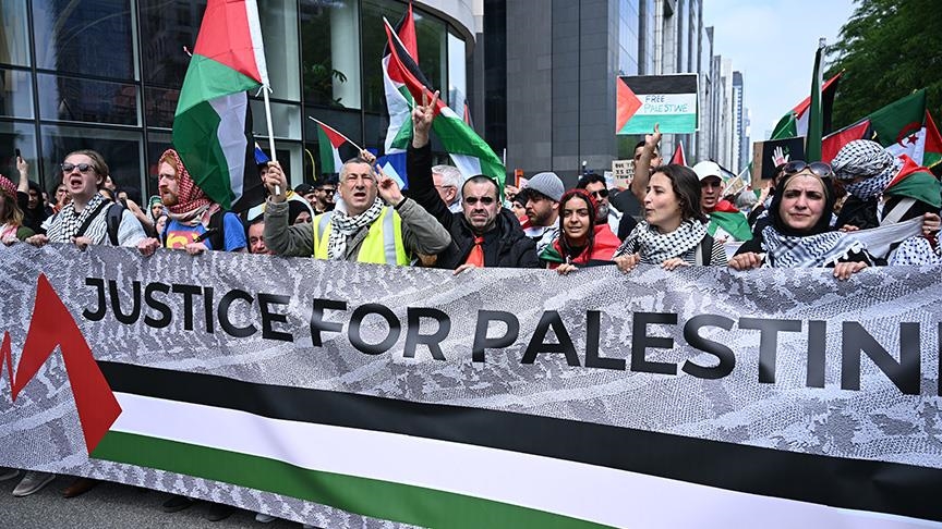 كما أطلقوا هتافات تشير إلى وجود “انتفاضة في الميادين والجامعات وفي كل مكان”، و”فلسطين حرة من البحر إلى النهر” و”إسرائيل القاتلة إرحلي من فلسطين”. وعقب تلاوة القرآن الكريم، تلي بيان باسم المتظاهرين أشار إلى استمرار الاحتلال الإسرائيلي والإبادة الجماعية بحق الفلسطينيين منذ أكثر من 75 عاما. وأضاف أن المأساة التي تعيشها غزة حاليا من حرب ودمار وتهجير، يحدث بتواطؤ أمريكي مع الكيان الإسرائيلي.