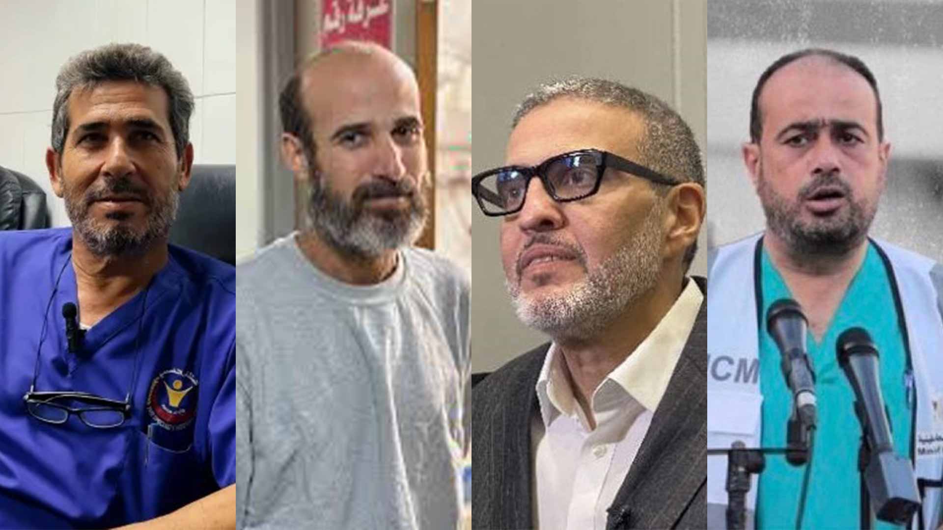ويتعلق الأمر بالدكتور عصام أبو عجوة، والدكتور محمد أبو سلمية، والدكتور محمود أبو شحادة، والدكتور بسام مقداد، والدكتور غسان أبو ستة، الدكتور خالد السر، بالإضافة إلى الدكتور حسام أبو صفية، والدكتور أحمد مهنّا اللذين لازالا قيد الاعتقال.