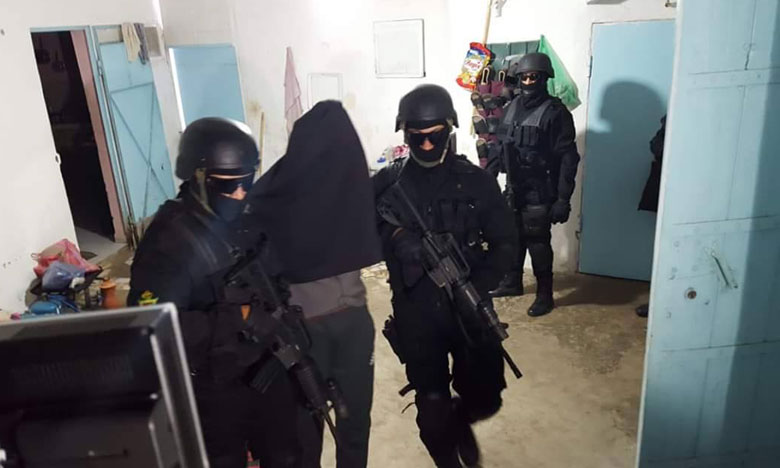 وذكر بلاغ لوزارة الداخلية أن هذه العملية أسفرت عن اعتقال العقل المدبر لهذه الخلية وأحد شركائه بعد مداهمة بيته بطماريس، حيث تم حجز أسلحة نارية عبارة عن بندقيتين وثلاثة مسدسات أوتوماتيكية، وذخيرة حية متنوعة، وأحزمة حاملة للخراطيش، وأسلحة بيضاء كبيرة الحجم وسواطير، وأكياس كبيرة الحجم تحتوي على مواد كيماوية يشتبه في استعمالها في صناعة المتفجرات، وأصفاد حديدية وبلاستيكية، ومجموعة من المعدات الخاصة بالغطس، وبندقيتين للصيد تحت الماء ومنظارين وكاميرا، وأجهزة اتصال لا سلكي وهواتف نقالة وبوصلتين، وأقنعة وقفازات، ودراجة نارية، ومبالغ مالية بالعملة الوطنية والأجنبية، بالإضافة إلى رايتين ترمزان لـ “داعش” ومخطوطات يدوية من بينها نص مبايعة “للخليفة” المزعوم لهذا التنظيم الإرهابي.