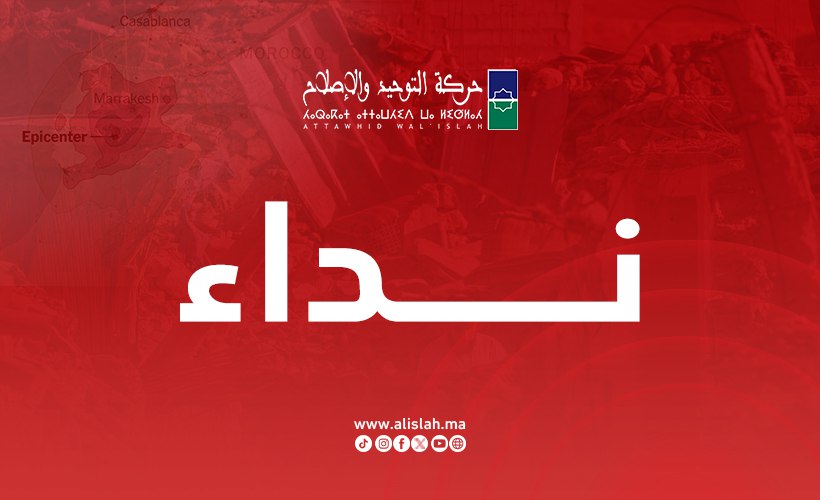 دعت حركة التوحيد والإصلاح في نداء لها عموم المغاربة إلى دعم فرق الإنقاذ والتبرع بالدم لصالح ضحايا لضحايا فاجعة “زلزال الحوز”، والتكافل معهم بما يقتضيه الحال من الاستعجال وتضامن باقي الجهات والأقاليم غير المتضرّرة مع المناطق المنكوبة إذ المسلمون مثلهم كمثل الجسد الواحد إذ اشتكى منه عضو تداعى له سائر الجسد بالسهر والحمى.