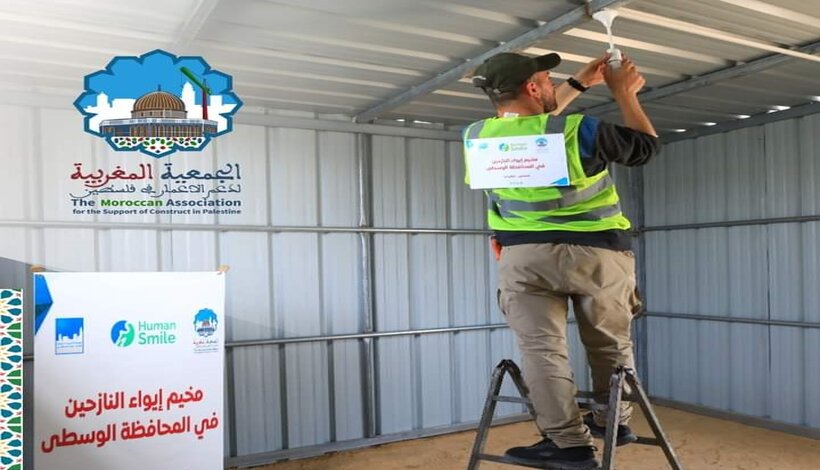 الجمعية المغربية لدعم الإعمار تركب بيوتا مؤقتة لنازحي غزة