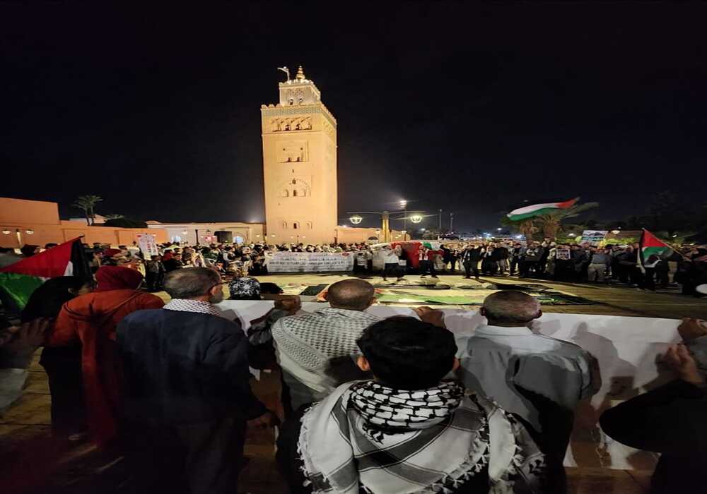 تخليدا لليوم العالمي للتضامن مع الشعب الفلسطيني، شهدت ساحة جامع الكتبية بمراكش حضورا قويا ومعبرا في وقفة شعبية لتذكير العالم بأن المغاربة سيواصلون دعمهم للشعب الفلسطيني وللمطالبة بإسقاط التطبيع.