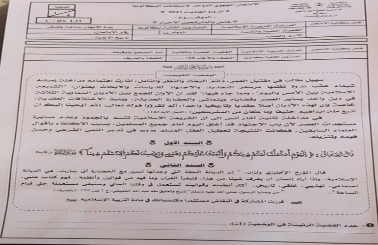 أثارت الوضعية التقويمية لامتحان في مادة التربية الإسلامية الأولى باكلوريا (الجهوي) الأحرار يونيو 2023، بأكاديمية مراكش جدلا ونقاشا في وسائل التواصل الاجتماعي وبين أساتدة المادة وتربويين بعدما تناولت الدعوة لـ”الديانة الإبراهيمية” ورمي الشريعة الإسلامية بالجمود وتعطيل العقل.
