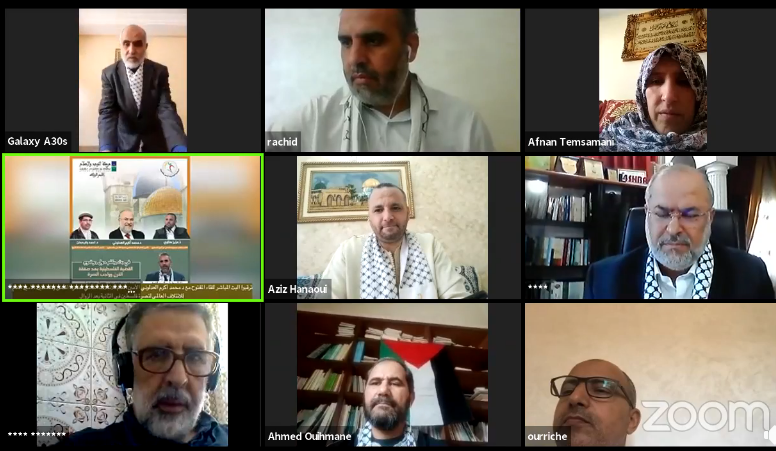 وعقب على مداخلة العدلوني كل من الدكتور أحمد ويحمان؛ رئيس المرصد المغربي لمناهضة التطبيع، والأستاذ عزيز هناوي؛ الكاتب العام لمجموعة العمل الوطنية من أجل فلسطين.