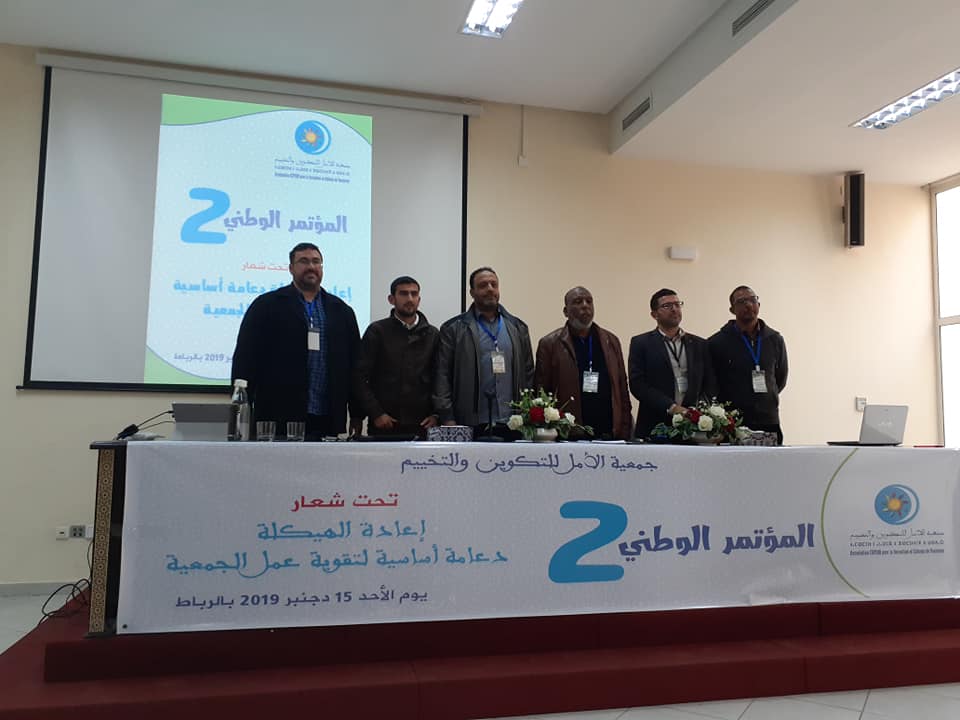 وأسفرت عملية انتخاب المكتب الوطني للجمعية بالإضافة إلى الرئيس، حسن المرابط كشوط نائبا للرئيس، وعبد الهادي حبيبو كاتبا عاما ومصعب البشيري نائبا له، ومحمد بوميا أمينا للمال ومحمد الجنياري نائبا له، ورضوان الخالدي مستشارا.
