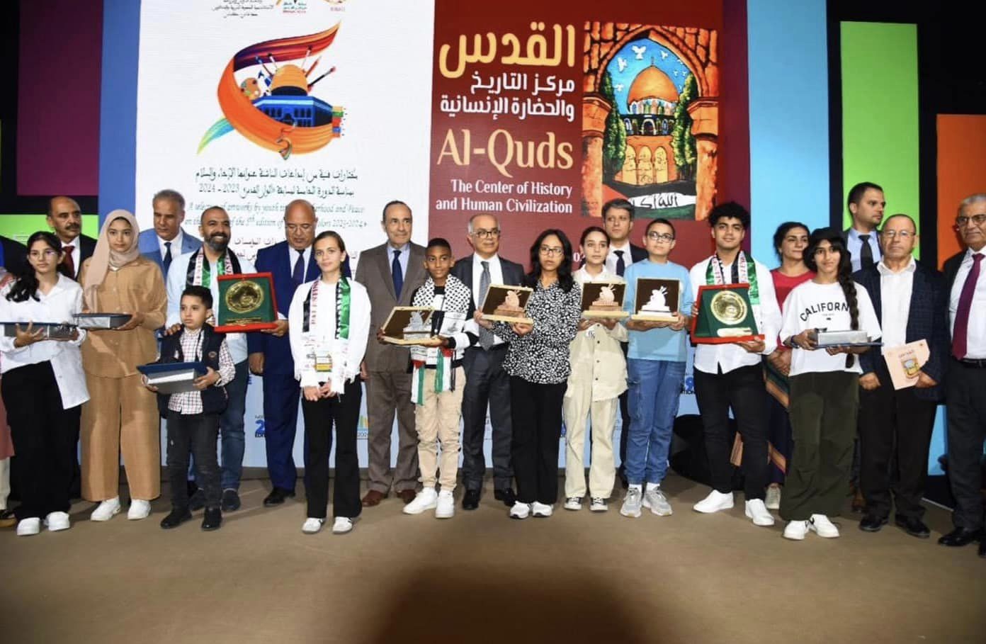 توجت وكالة بيت مال القدس الشريف بتعاون مع الأكاديمية الجهوية للتربية والتكوين لجهة فاس- مكناس ومديرية التربية والتعليم بالقدس الفائزين بمسابقة “ألوان القدس”، في دورتها الخامسة، في حفل أقيم، يوم الخميس 16 ماي 2024 بالرباط، في إطار فعاليات الدورة الـ29 للمعرض الدولي للنشر والكتاب.