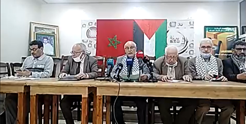 يذكر أن مجموعة العمل الوطنية من أجل فلسطين نظمت صباح يوم الخميس 20 ماي 2021 الساعة العاشرة صباحا (10H) بمقر النقابة الوطنية للصحافة المغربية ندوة صحفية بخصوص بيان موقفها من قرار السلطات المغربية الذي منع المسيرة التي دعت لها المجموعة، ومستجدات القضية الفلسطينية ومجموع المبادرات المزمع اتخاذها بهذا الخصوص دعما للشعب الفلسطيني. وهي الندوة التي حضرتها مجموعة من المنابر الإعلامية، وافتتحت بكلمة للأستاذ عبد القادر العلمي منسق المجموعة بتلاوة بيان المجموعة، والذي طالب المسؤولين المغاربة بالتراجع عن قرار منع المسيرة التضامنية مع فلسطين التي دعت إليها المجموعة يوم الأحد المقبل 23 ماي2021.