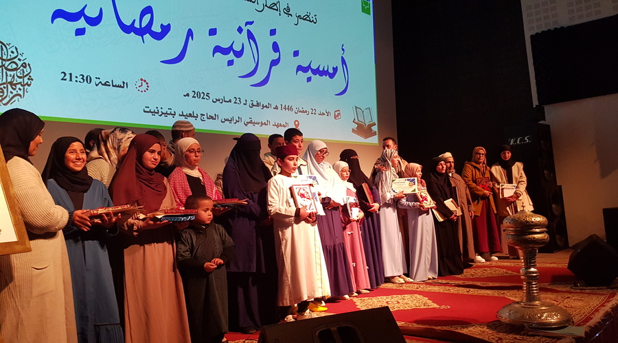 نظمت حركة التوحيد والإصلاح بتيزنيت الأحد الماضي 22 رمضان 1446 الأمسية القرآنية الرمضانية بمقر المعهد الموسيقي الرايس الحاج بلعيد بمدينة تيزنيت.