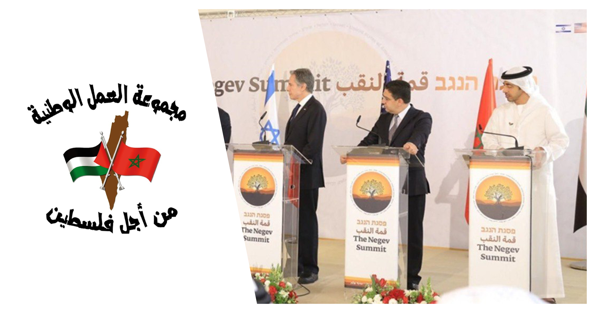 “مجموعة العمل” تستنكر عقد قمة “النقب 2” بالمغرب وتجدد تنديدها بكل أشكال التطبيع