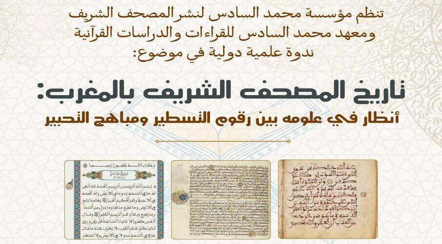 أعلنت مؤسسة محمد السادس لنشر المصحف الشريف ومعهد محمد السادس للقراءات والدراسات القرآنية، عن تنظيم ندوة علمية دولية في موضوع: “تاريخ المصحف الشريف بالمغرب: أنظار في علومه بين رقوم التسطير ومباهج التحبير” يومي الثلاثاء والأربعاء 03 و04 دجنبر 2024.