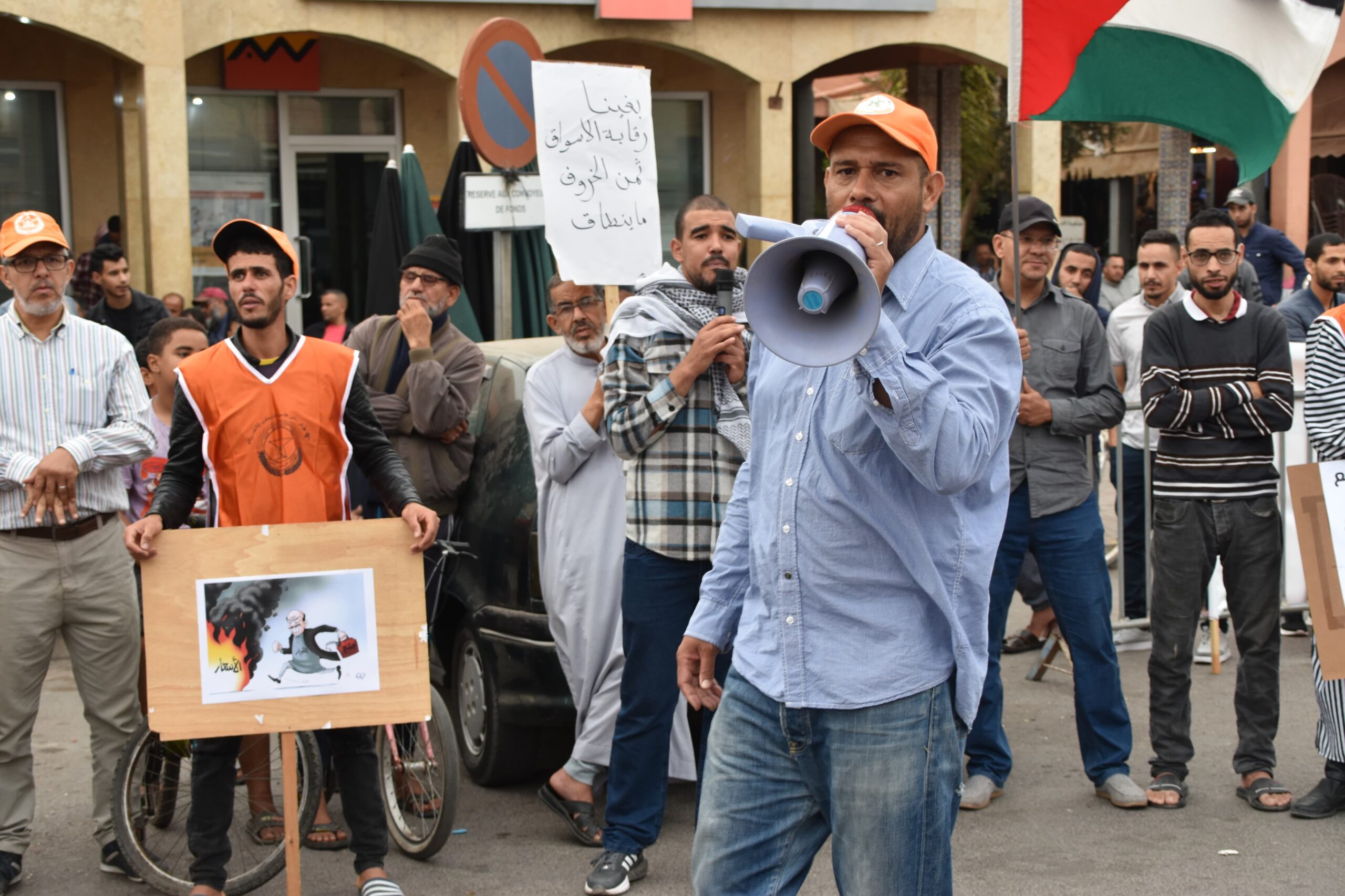 وعرج المحتجون على فضيحة نتنياهو رئيس الوزراء “الإسرائيلي” الذي عمد إلى بتر الصحراء المغربية في خريطة للمغرب العربي، واعتبر مناضل الاتحاد الوطني للشغل بالمغرب ما أقدم عليه الصهيوني نتنياهو إهانة للمغاربة الذين لا يقبلون عبر الزمن أن يمس شبر واحد من أرضهم.