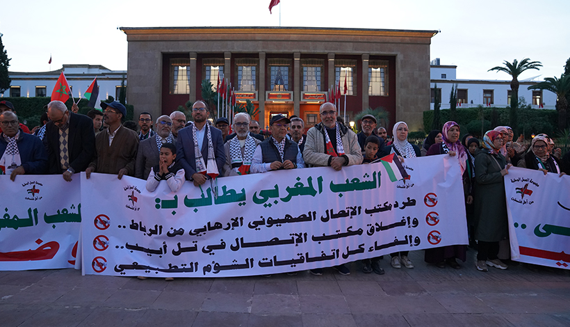 ورفع المشاركون شعارات ولافتات داعمة للقضية الفلسطينية وللمقاومة الصامدة في قطاع غزة والضفة وللمرابطين في المسجد الأقصى، كما نددت الشعارات بالتآمر الدولي على الفلسطينيين والمواقف المخزية لعدد من الدول العربية. وطالب المشاركون في الوقفة بوقف كل أشكال التطبيع والإغلاق النهائي لمكتب اتصال مع الكيان الغاصب بالرباط.