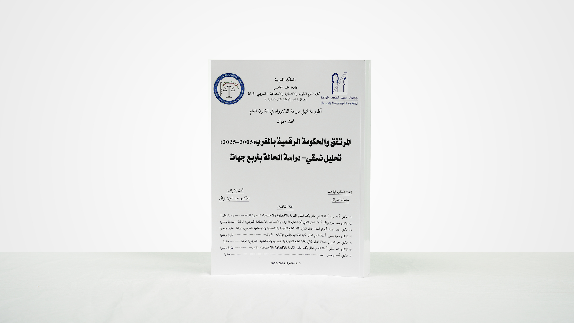 شهدت كلية العلوم القانونية والاقتصادية والاجتماعية – السويسي، التابعة لجامعة محمد الخامس بالرباط، مناقشة أطروحة دكتوراه رصينة ومتميزة في القانون العام، أعدّها الباحث سليمان العمراني، تحت إشراف الأستاذ الدكتور عبد العزيز قرقي، حملت عنوان: