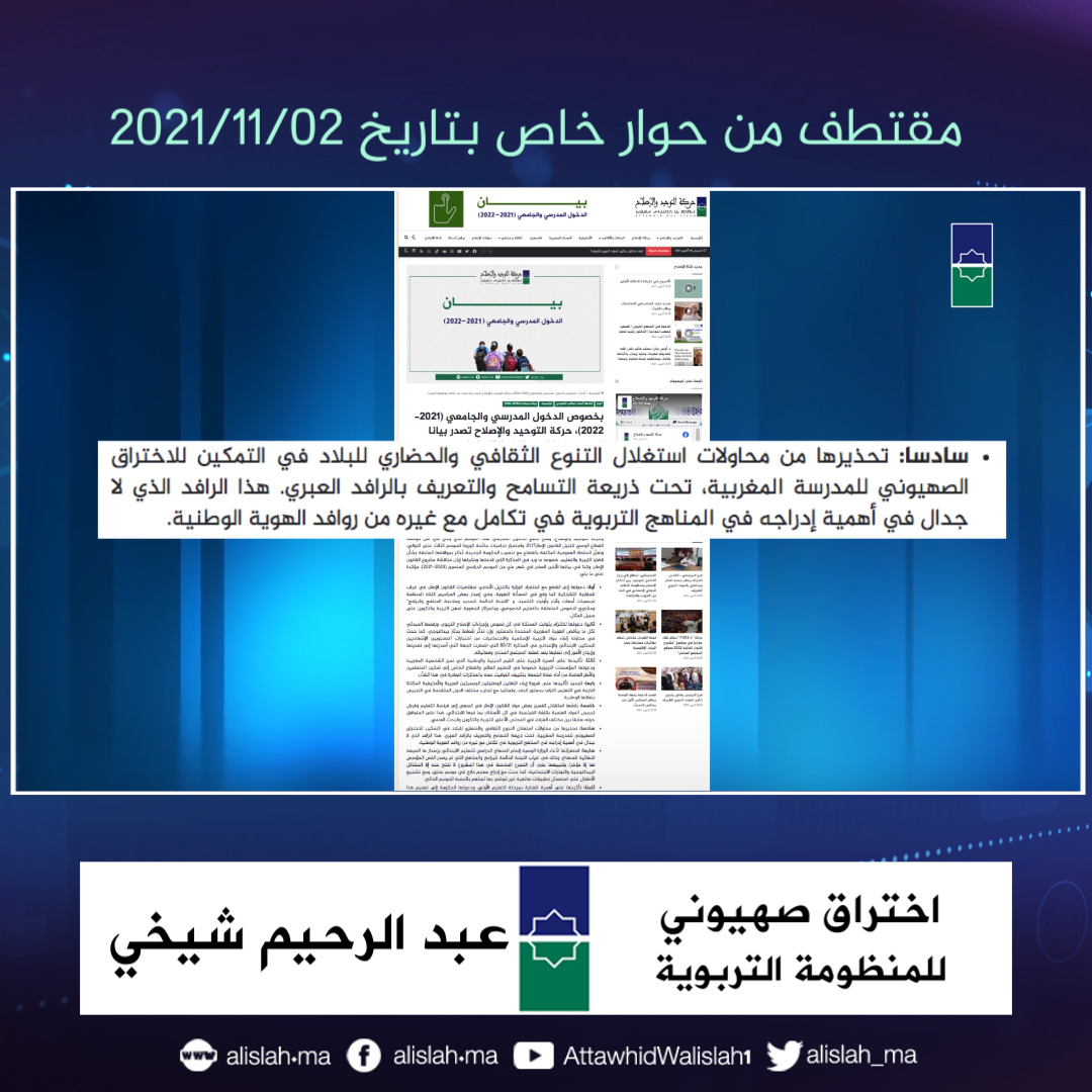 الرئيسية/قناة الإصلاح/إنتاجات أخرى/اختراق صهيوني للمنظومة التربوية | ذ.عبد الرحيم شيخي إنتاجات أخرى اختراق صهيوني للمنظومة التربوية | ذ.عبد الرحيم شيخي13 نوفمبر، 2021الحوار كاملا :13 نوفمبر، 2021 للمشاركة : فيسبوك X لينكدإن ماسنجر ماسنجر واتساب تيلقرام مشاركة عبر البريد