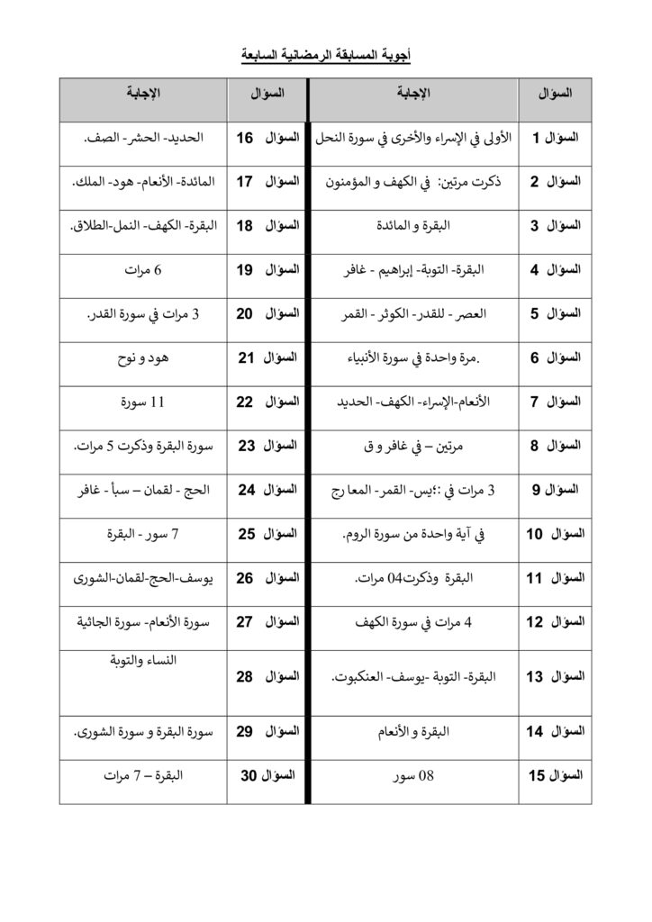 ونشر الفرع أجوبة المسابقة، وكشف عن أسماء الفائزين مرتبة حسب الاستحقاق، داعيا الحاصلين على الرتب الثلاثة الأولى التواصل مع إدارة مقر الحركة من أجل التوصّل بالجوائز.