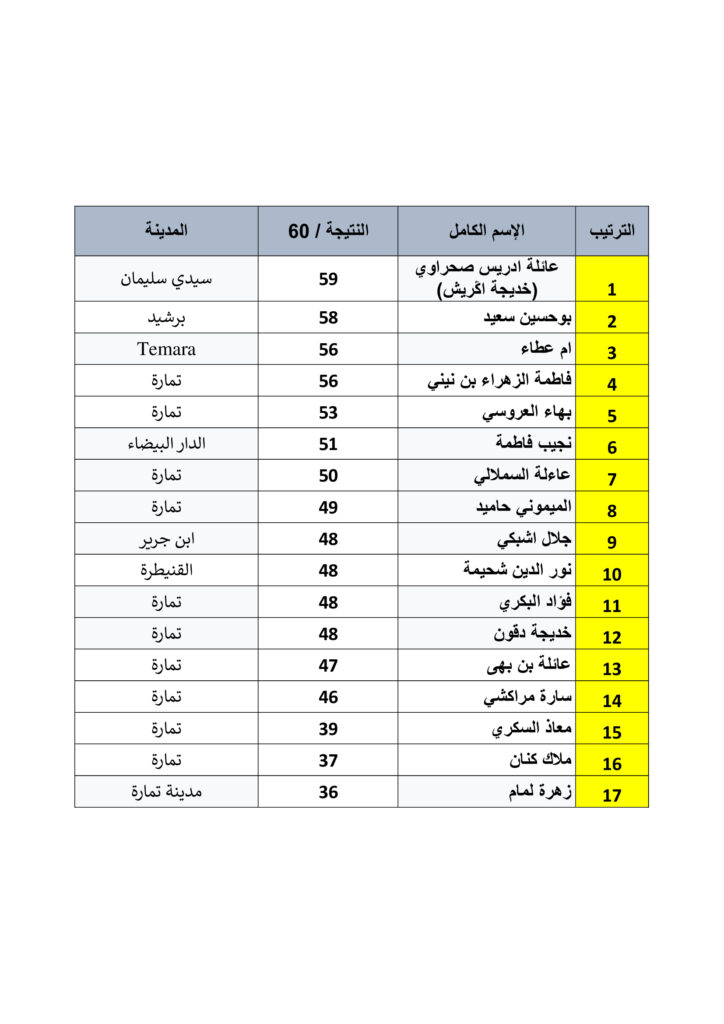 أعلن الفرع الإقليمي لحركة التوحيد والإصلاح بتمارة عن نتائج المسابقة الرمضانية السابعة، التي نظمها الإقليم طيلة شهر رمضان المبارك 1447 هـ.