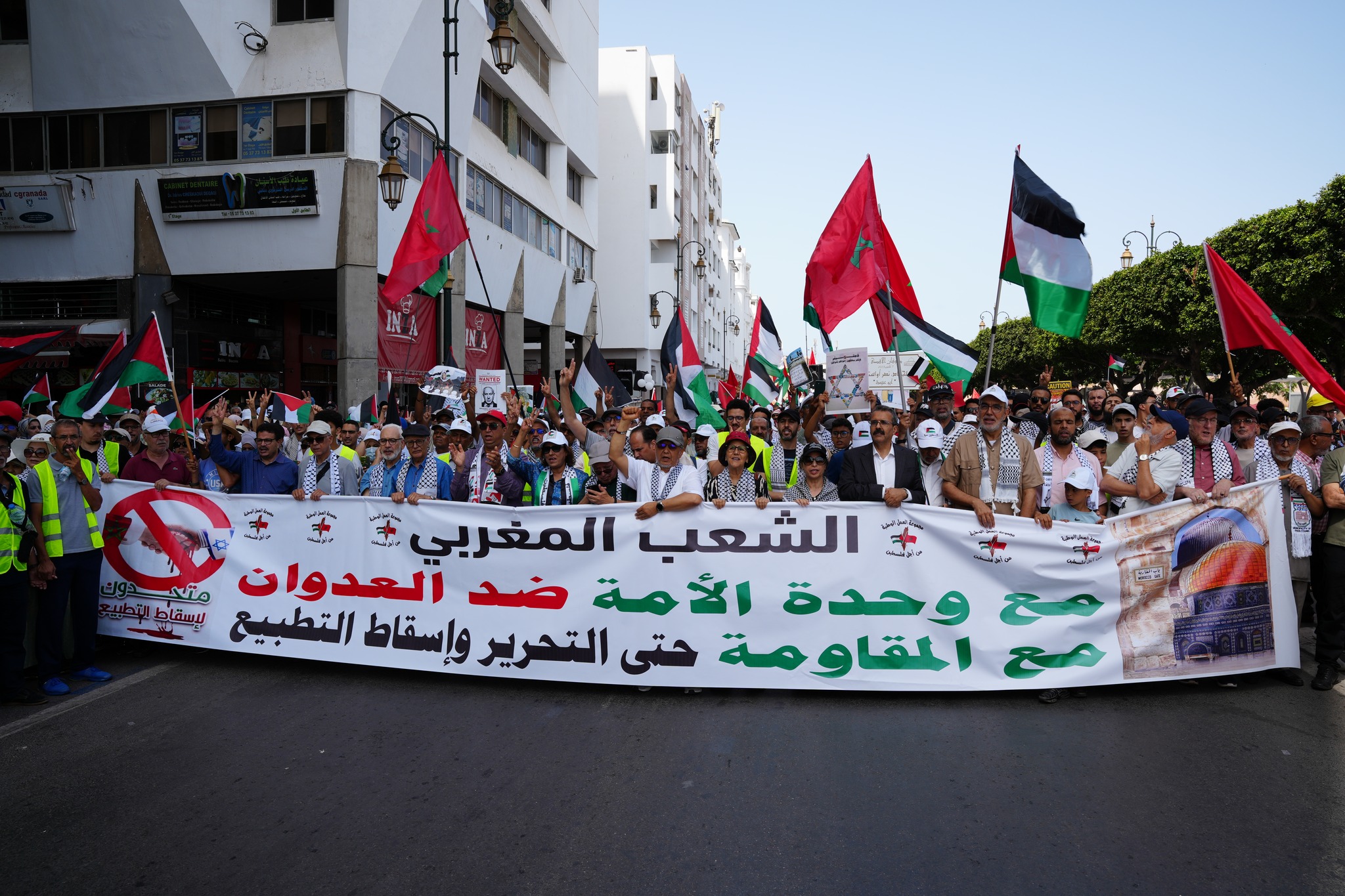 وتوجه البلاغ بالتحية لأحرار العالم الذين يجسدون أشكالا مختلفة من التضامن والنصرة مع فلسطين، وآخرها محاولات كسر الحصار عن غزة عبر سفينة “حنظلة” التي تعرضت لتدخل صهيوني واعتقال المشاركين فيها من ضمنهم الصحفي المغربي محمد البقالي، داعيا إلى مضاعفة الجهود لفك الحصار وإيقاف العدوان.