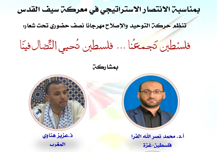 وسيشارك في المهرجان الذي سينظم نصف حضوريا، الدكتور محمد نصر الله الفرا من فلسطين، والاستاذ عبد العزيز هناوي الكاتب العام للمرصد المغربي لمناهضة التطبيع، فيما سيحيي الحفل المنشدين عبد الفتاح عوينات ومحمد كندو.