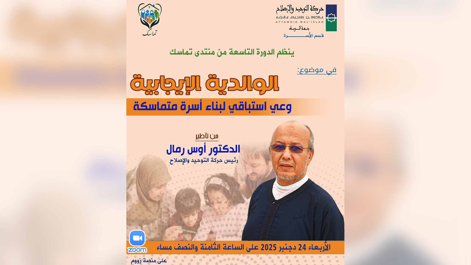ويؤطر الموضوع الدكتور أوس رمال رئيس حركة التوحيد والإصلاح يوم الأربعاء 24 دجنبر 2025، على الساعة الثامنة والنصف مساء على منصة زووم.