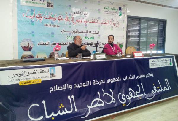تحت شعار: “كونوا على الخير أعوانا”، وانطلاقا من قوله تعالى: {وَتَعَاوَنُوا عَلَى الْبِرِّ وَالتَّقْوَىٰ} [المائدة: 2]، نظم قسم الشباب الجهوي لحركة التوحيد والإصلاح بالجهة الكبرى للقرويين “الملتقى الجهوي الثاني لأطر الشباب” يوم 21 و22 دجنبر 2019 الموافق لـ 24 و25 ربيع الثاني 1441هـ، بالمركب التربوي فاطمة الفهرية بمدينة فاس.