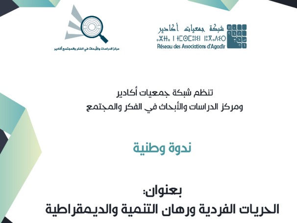 تستعد كل من شبكة جمعيات أكادير ومركز الدراسات والأبحاث في الفكر والمجتمع، لتنظيم ندوة وطنية في موضوع :”الحريات الفردية ورهان التنمية والديمقراطية”.