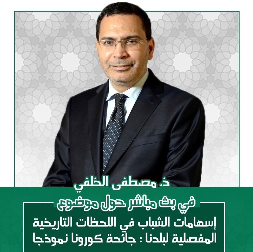 ينظم قسم الشباب المركزي، لقاء مع الأستاذ مصطفى الخلفي عضو مجلس شورى الحركة، في بث مباشر في موضوع ” إسهامات الشباب في اللحظات التاريخية المفصلية لبلدنا: جائحة كورونا نموذجا”، وذلك يوم الثلاثاء 21 أبريل 2020 على الساعة الثامنة والنصف مساء (30 : 20) على الصفحة الرسمية للحركة على الفيسبوك.