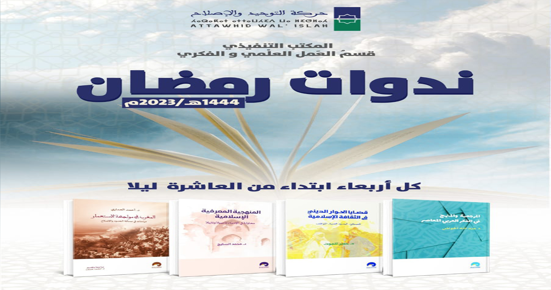 ينظم قسم العمل العلمي والفكري لحركة التوحيد والإصلاح خلال شهر رمضان المبارك، أربع ندوات عن بعد تتدارس أربعة كتب مهمة صدرت مؤخرا عن مؤسسة محيط.
