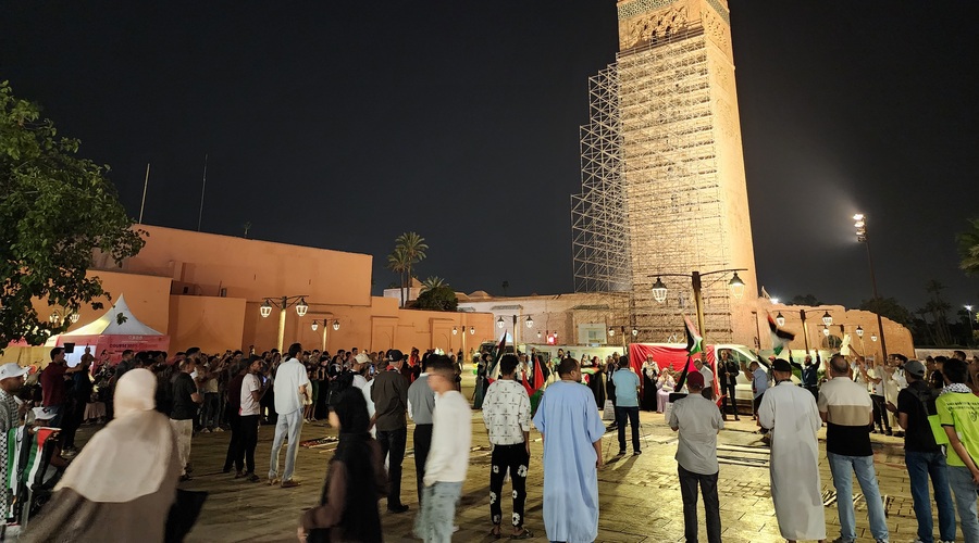 نظمت المبادرة المغربية للدعم والنصرة وقفة شعبية بساحة مسجد الكتبية بمراكش، تخليدا للذكرى الثانية لطوفان الأقصى وإسنادا لغزة، ولقافلة الصمود وللنشطاء الأحرار المعتقلين لدى جيش الإجرام الصهيوني، وذلك أمس الجمعة 03 أكتوبر 2025.