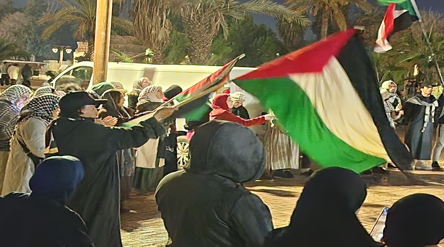 كما ندد المتضامنون بخروقات الاحتلال لاتفاق وقف إطلاق النار والمواثيق الدولية ومنع دخول المساعدات إلى القطاع المُحاصَر، واستمراره في ارتكاب المجازر بحق المدنيين والنساء والأطفال.