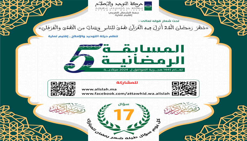 في إطار المسابقة الرمضانية الخامسة التي ينظمها فرع حركة التوحيد والإصلاح بإقليم تمارة، بمناسبة حلول شهر رمضان الأبرك 1445هـ.