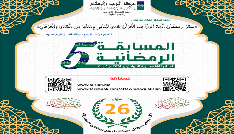 في إطار المسابقة الرمضانية الخامسة التي ينظمها فرع حركة التوحيد والإصلاح بإقليم تمارة، بمناسبة حلول شهر رمضان الأبرك 1445هـ.