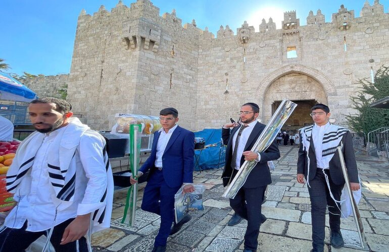 وشوهد المستوطنون أمام باب القطانين، أحد أبواب المسجد الأقصى، حاملين “القرابين النباتية” احتفالا بما يسمى ” عيد العُرش العبري”، في الوقت الذي قامت قوات الاحتلال بملاحقة المتواجدين في المسجد الأقصى وإجبار الشبان على الخروج منه في محاولة لتفريغه.