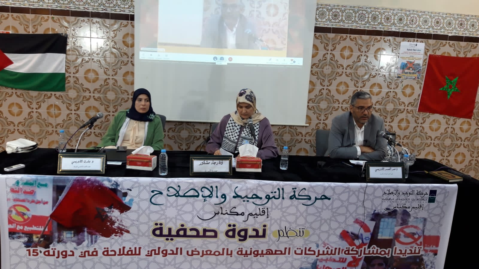 تنديدا بمشاركة شركات صهيونية في المعرض الدولي للفلاحة في دورته الـ 15 بمدينة مكناس، نظمت حركة التوحيد والإصلاح بإقليم مكناس بعد عصر يوم أمس الخميس 4 ماي 2023 ندوة صحفية.