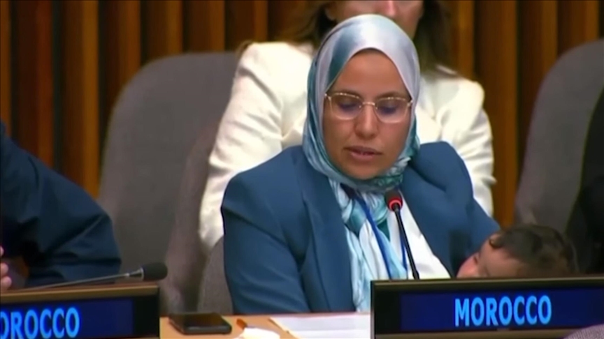 برلمانية مغربية تلقي كلمة بالأمم المتحدة وهي تحمل رضيعها
