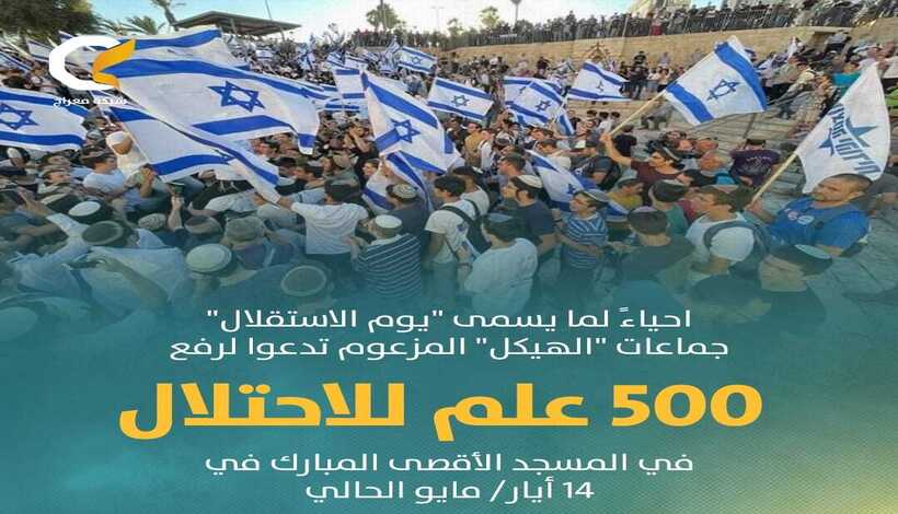 دعت إحدى “جماعات المعبد” المستوطنين لاقتحام واسع للمسجد الأقصى لرفع 500 علم للاحتلال “إسرائيلي” في ما يسمى “عيد الاستقلال” الذي يوافق يوم الثلاثاء 14 ماي 2024، عشية ذكرى النكبة.