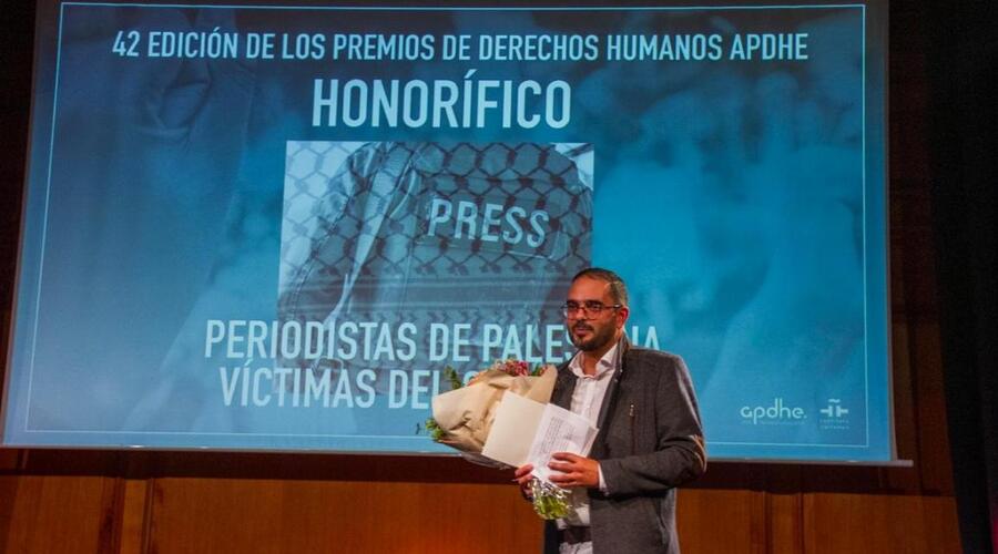 منحت جمعية حقوق الإنسان الإسبانية في دورتها الثانية والأربعين، الجائزة الفخرية لحقوق الإنسان لعام 2024، للصحفيين الفلسطينيين ضحايا حرب الإبادة في قطاع غزة، بحضور شخصيات مجتمعية وسياسية من البرلمان، ووزراء في الحكومة الإسبانية.