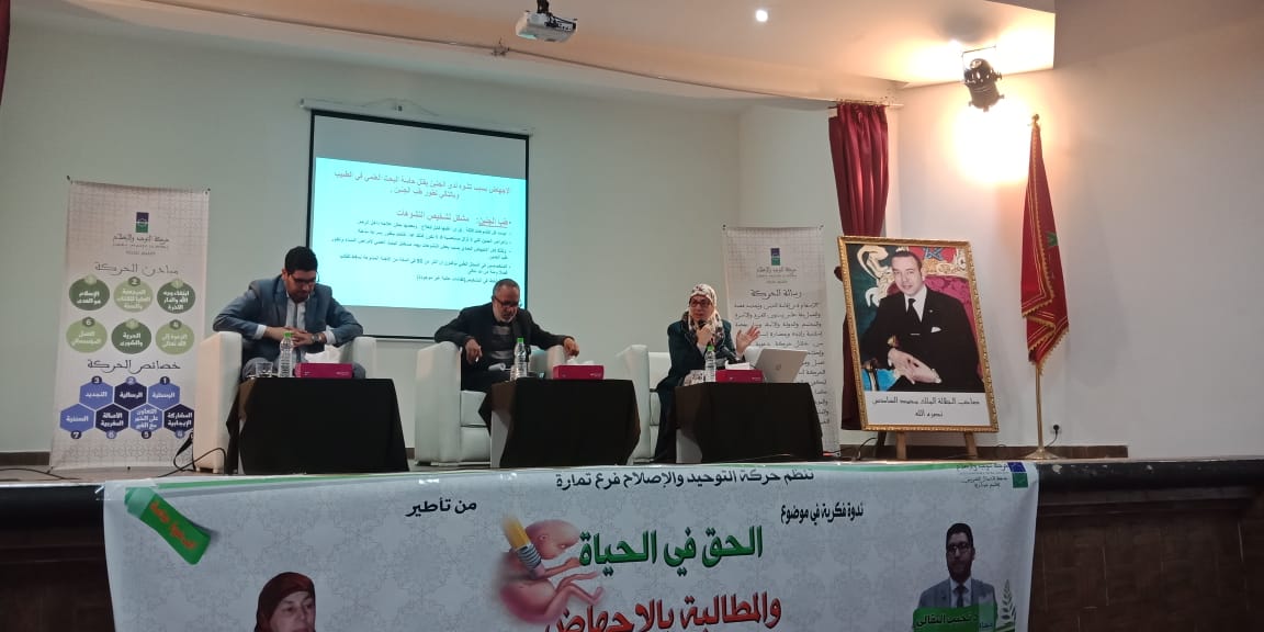 وتأتي مداخلة الدكتورة حنان الإدريسي في إطار ندوة فكرية نظمتها حركة التوحيد والإصلاح الفرع الإقليمي تمارة في موضوع “الحق في الحياة والمطالبة بالإجهاض”، أطرها كل من الدكتورة حنان الإدريسي؛ نائب رئيس الحركة، والدكتور الحسين الموس؛ عضو المكتب التنفيذي للحركة ونائب رئيس مركز المقاصد للدراسات والبحوث، والمحامي والبرلماني نجيب البقالي، يوم السبت 29 فبراير 2020، بالمركب الثقافي عزيز لحبابي تمارة.