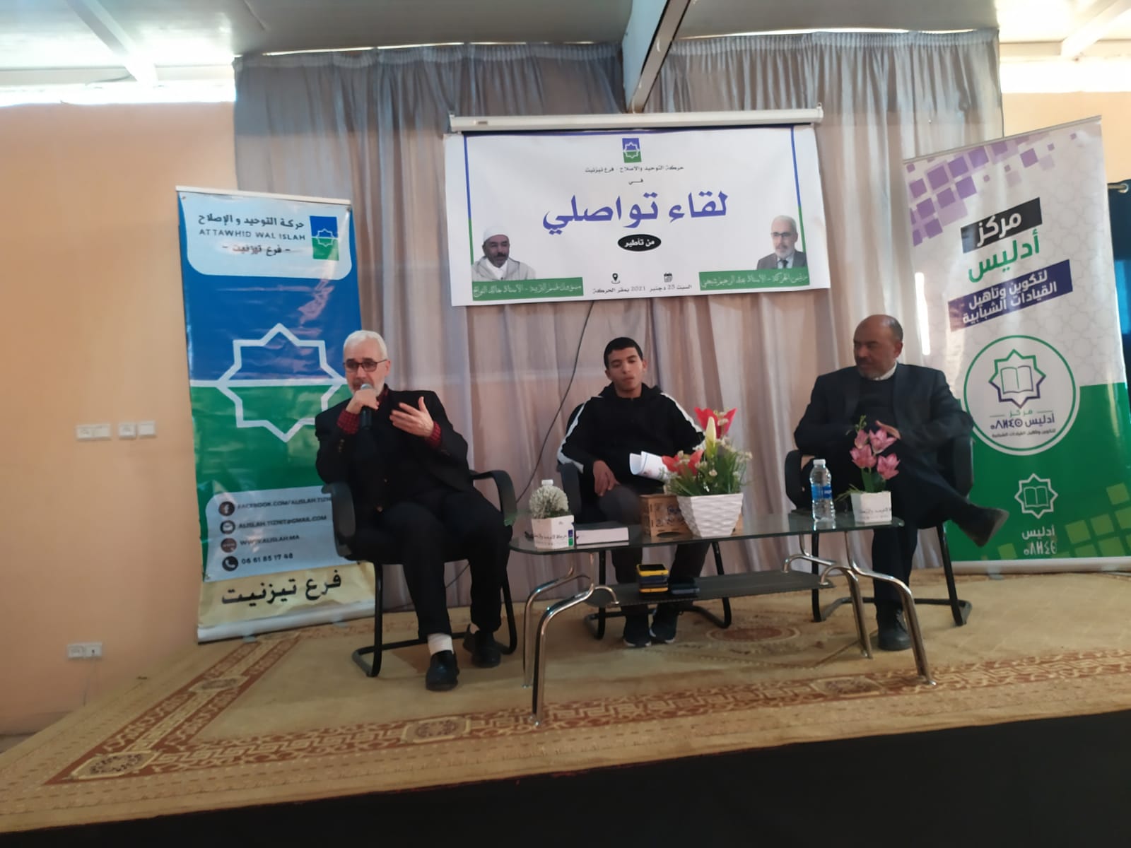 أطر الأستاذ عبد الرحيم شيخي رئيس حركة التوحيد والإصلاح، رفقة الأستاذ خالد التواج عضو المكتب التنفيذي  لقاء تواصليا مع شباب إقليم تزنيت مساء هذا اليوم السبت 25دجنبر 2021.