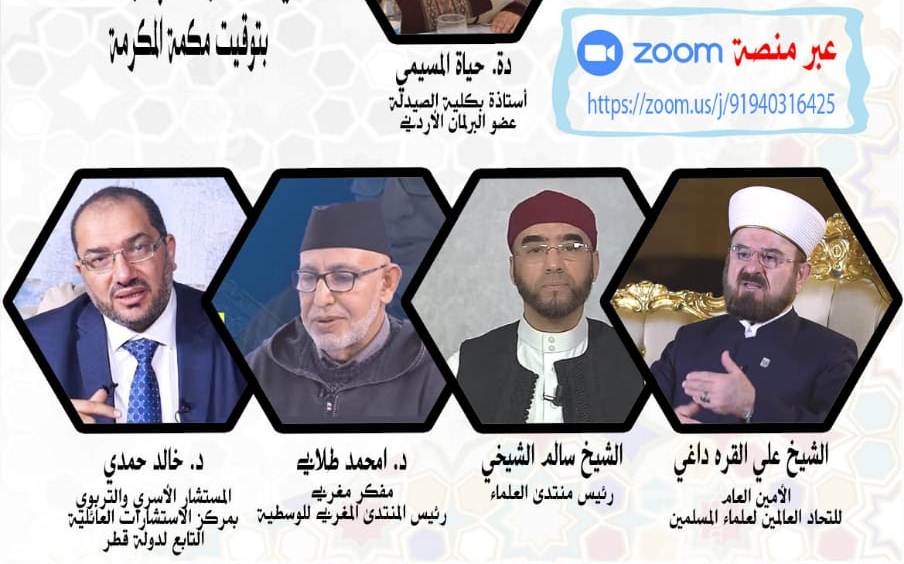 وشارك في الندوة التي أقيمت عبر منصة zoom أيضا الشيخ علي القره داغي الأمين العام للاتحاد، والشيخ سالم الشيخي عضو مجلس أمناء الاتحاد ورئيس لجنة التدريب في الاتحاد، والدكتورة حياة المسيمي عضو البرلمان الأردني، والدكتور خالد حمدي المستشار الأسري والتربوي بمركز الاستشارات العائلية التابع لدولة قطر.
