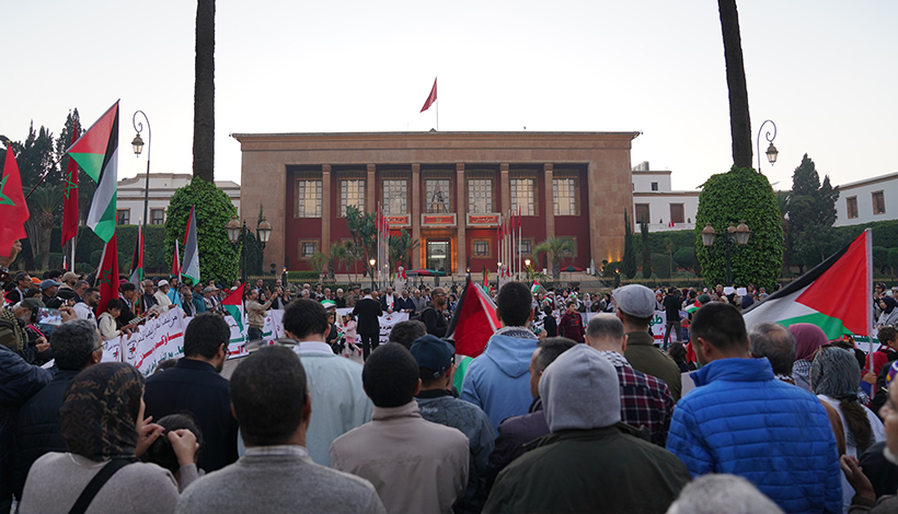 احتشد عشرات من المغاربة في وقفة تضامنية أمام مبنى البرلمان بالعاصمة الرباط يوم الجمعة 17 نونبر 2023 للتنديد بالإبادة الجماعية وجرائم الحرب التي يقترفها الاحتلال “الإسرائيلي” في حق سكان قطاع غزة المحاصر قرابة عقدين.