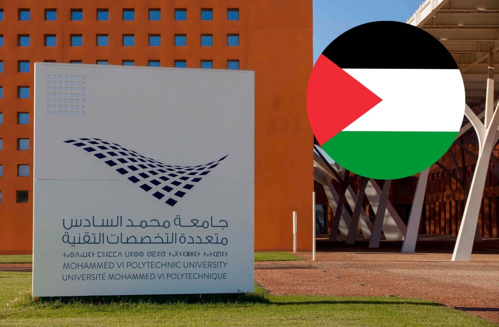 و توشح بعض طلبة جامعة محمد السادس متعددة التخصصات في ابن جرير بالكوفية الفلسطينية خلال اعتلائهم منصة التتويج يوم السبت 28 شتنبر 2024، بعد ما كانت إدارة الجامعة ألغت حفل التخرج برسم الموسم الجامعي 2023-2024.
