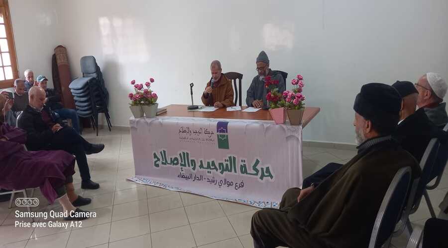 نظّم المكتب الإقليمي لحركة التوحيد والإصلاح فرع مولاي رشيد يوم السبت 10 رمضان 1447هـ الموافق لـ 28 فبراير 2026 بمقر الرحمة، فعاليات الدورة الإيمانية الثانية ضمن برنامج الموسم الدعوي والتربوي 2025/2026 بحضور عدد من الأعضاء والمهتمين بالشأن التربوي والدعوي.