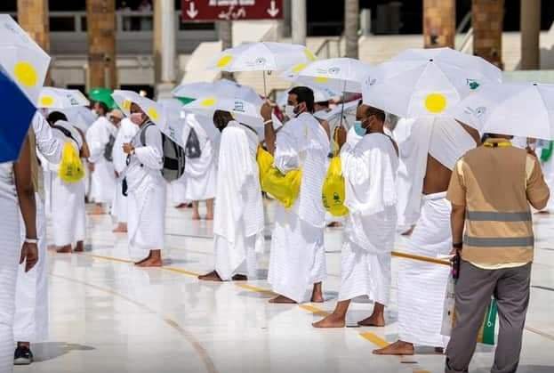 وظهر الحجاج في بث تلفزيوني مباشر صباح الأربعاء وهم يسيرون في صفوف منظمة داخل المسجد الحرام متّجهين نحو الكعبة وقد وضعوا كمامات وتركوا مسافة بين الواحد الآخر، بينما كان دليل يتقدمهم. ثم داروا حول الكعبة تحت أنظار شرطيين ومسؤولين في المكان.