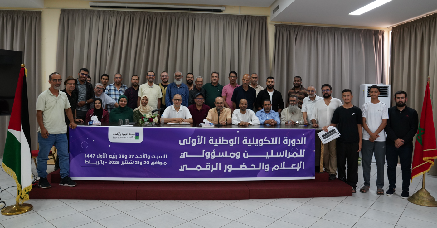 نظم قسم الإعلام والحضور الرقمي لحركة التوحيد والإصلاح يومي السبت والأحد 20 و21 شتنبر الجاري، الدورة التكوينية الوطنية الأولى للمراسلين ومسؤولي الإعلام والحضور الرقمي.