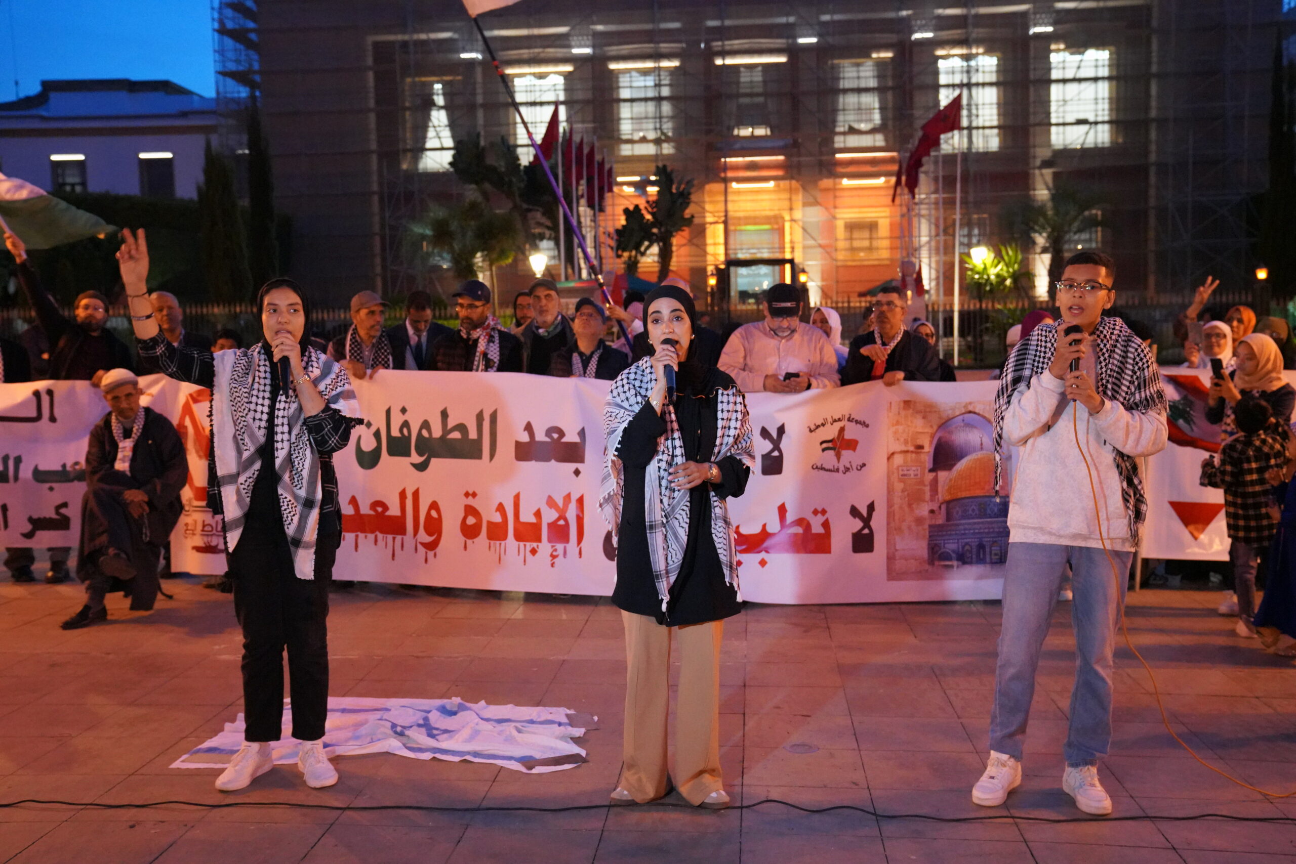 احتشد مئات من المغاربة، الجمعة، في فعالية شعبية نضالية، أمام البرلمان بالعاصمة المغربية الرباط، إحياء لذكرى النكبة، تحت شعار “لا نكبة مع الطوفان ولا تطبيع مع الإبادة والعدوان”، دعت إليها مجموعة العمل الوطنية من أجل فلسطين.