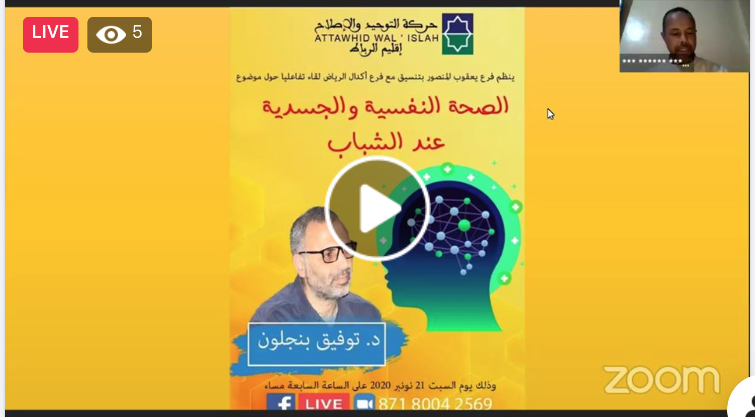 مباشر :محاضرة للدكتور توفيق بنجلون تحت عنوان الصحة النفسية والجسدية عند الشباب من تنظيم الفرع الإقليمي لحركة التوحيد والإصلاح الرباط