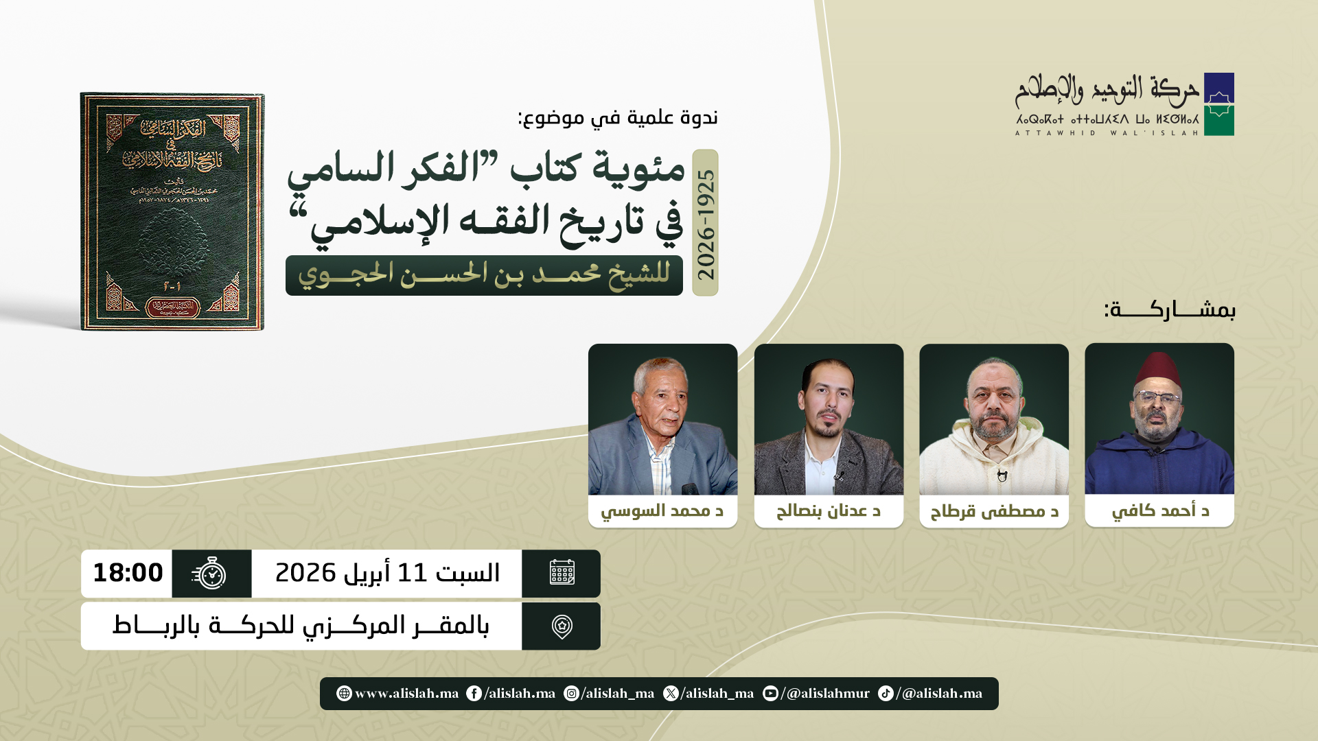 مباشر | ندوة علمية في موضوع: مئوية كتاب “الفكر السامي في تاريخ الفقه الإسلامي” للشيخ محمد بن الحسن الحجوي