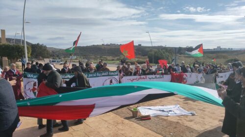 واحتشد مئات المغاربة في وقفة دعت إليها كل من مجموعة العمل الوطنية من أجل فلسطين والجبهة المغربية لدعم فلسطين ومناهضة التطبيع فرع بركان، للتعبير عن الرفض الشعبي لأي شكل من أشكال التطبيع، ولتأكيد الموقف الثابت الداعم للقضية الفلسطينية.