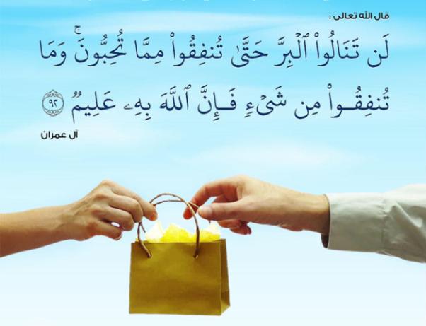 قال تعالى : ( فَاتَّقُوا اللَّهَ مَا اسْتَطَعْتُمْ وَاسْمَعُوا وَأَطِيعُوا وَأَنْفِقُوا خَيْرًا لِأَنْفُسِكُمْ وَمَنْ يُوقَ شُحَّ نَفْسِهِ فَأُولَئِكَ هُمُ الْمُفْلِحُونَ )، وقال تعالى ( وَمَا أَنْفَقْتُمْ مِنْ شَيْءٍ فَهُوَ يُخْلِفُهُ وَهُوَ خَيْرُ الرَّازِقِينَ )، وقال تعالى وقوله سبحانه وتعالى : ( وَمَا تُقَدِّمُوا لِأَنْفُسِكُمْ مِنْ خَيْرٍ تَجِدُوهُ عِنْدَ اللَّهِ هُوَ خَيْرًا وَأَعْظَمَ أَجْرًا ).