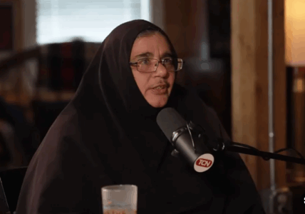 الراهبة الأميركية الأم أغابيا ستيفانوبولوس خلال ظهورها في برنامج “تاكر كارلسون شو”.
